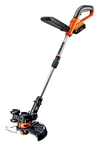 The WORX WG156 is a compact and light weight cords trimmer/edger. The WG156 comes with two 20-Volt Max Lithium batteries that provide long life, no memory effect and no self discharge, while being light weight. The trimmer easily converts into an edger and vise-versa in seconds to allow you to keep working. The Edger function features in-line wheels to make edging a breeze. There is a 100% automatic single line feed for best cutting performance and no need for bumping to extend the line. The trimmer has an adjustable spacer guard that helps protect flowers and ornamental landscaping. The two included batteries provide you with twice the run time so you can get the job done without interruption. The WG156 is also very ergonomic with a telescoping pole for height adjustment and a pivoting handle for comfort and control.